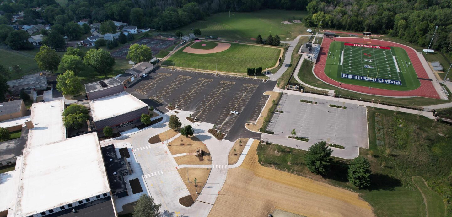 After a state-of-the-art sports complex, Jack and Pat Bush Stadium, was built for St. Ambrose University and Assumption High School, it was time for the attached parking lot to reflect this newness and expansion. McCarthy Improvement laid 9,000 sq ft of new sidewalk and 29,000 sq ft of new concrete road and parking lot surface. A new detention pond including varying types of pipe work will help water drainage.